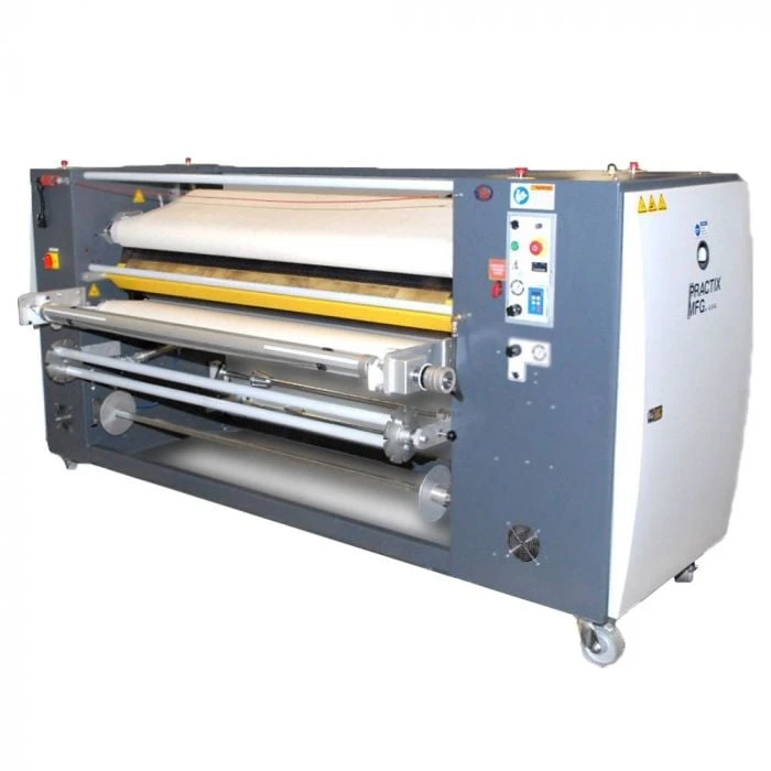 The Practix dye sublimation rotary heat model OK-10 RTR 48 is a sublimation Transfer press that makes transferring any large job quick and easy. The oil filled heated drum is 10ā³ (250 mm) in diameter and has 240 degrees of wrap achieving faster production speeds than most comparable models. This Press can be used for transferring on continuous or roll materials. This heat transfer machine is small and affordable offering the Practix high quality innovative engineered design using a heavy duty frame, automation, and best quality electrical and pneumatic components like all Practix heat transfer equipment, including sublimation machines, lamination machinery, and embossing equipment.