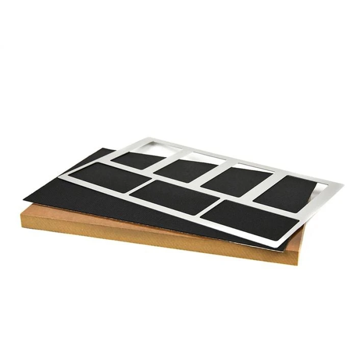 The 8.5″ x 14″ MDF Board Sublimation Jig for Unisub Luggage Tags (SB5655) gives you the ability to align seven or fewer bag tags for faster production and accuracy. This 3 piece Jig Kit contains an aluminum Jig, Leveling pad, and MDF backer panel.
