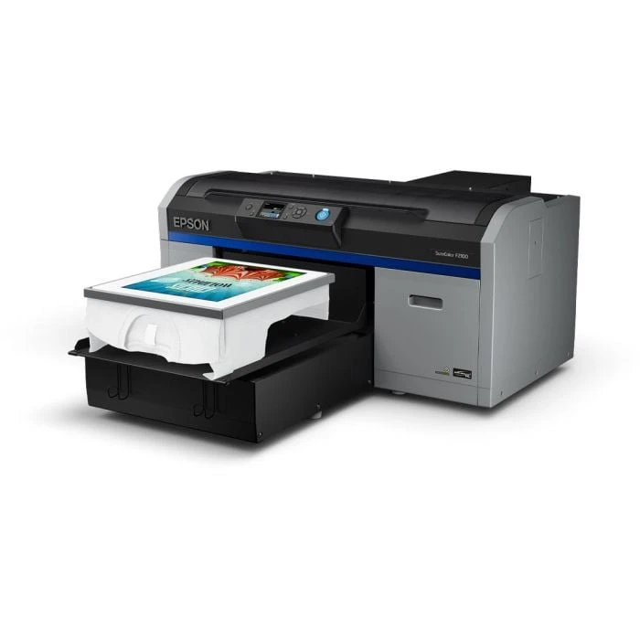 The Epson SureColor F2100 takes direct-to-garment printing to new heights with increased reliability, greater productivity and enhanced print quality. Building on the success of the SureColor F2000, the #1 selling DTG printer, the SureColor F2100 also offers print speeds up to twice as fast.