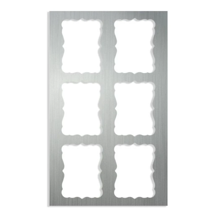 Unisub’s aluminum production jig for the benelux-shaped hardboard ornaments allows for easy alignment and pressing of 6 or less ornaments for faster production and accuracy.